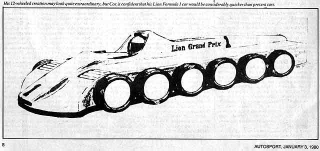 ガスタービンエンジンを搭載する12輪マシンであるが、80年代の時点でガスタービンエンジン、4輪以上のF1マシンが規則上