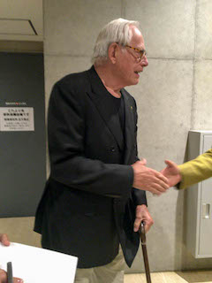 当日は開場と同時に席取りし、通路に出たところでラムス氏が。杖をつかれていて、やはり83歳のご高齢を感じました。一方で、シンポジウムで話に熱が入っていくときのラムス氏は力強く、覇気を感じました。