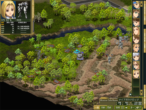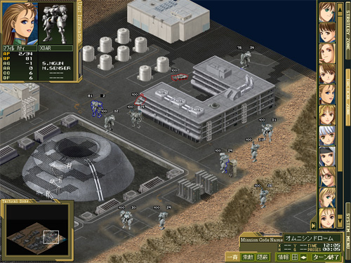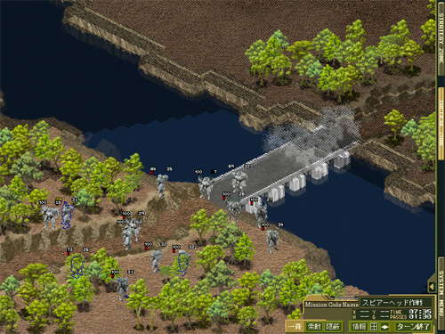 与えられた司令を達成するべく、戦術マップ上でパワーローダーによる戦闘を行います。 クォータービューマップで高低差などを把握し、また通信により支援砲撃などを使い、作戦を有利に進めましょう。