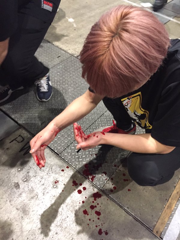 頭ってちょっとすっただけでも結構な勢いで血が出るから、見た目より大した傷じゃないよこれ