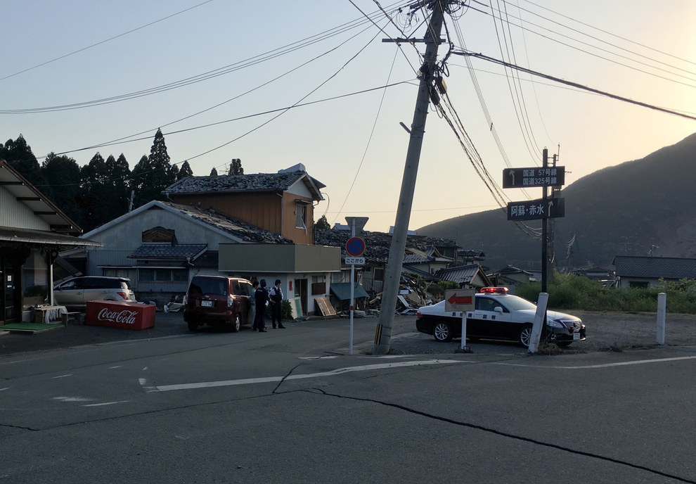 南阿蘇村でも、被害の状況は様々だ。被害があまり見られない東部と異なり、今回訪れた西部の河陽地区の被害は甚大。警戒にあたる警官以外には、ほとんど人に出会わなかった。BuzzFeed Newsは警官に状況を尋ね、安全を確認しつつ取材した。