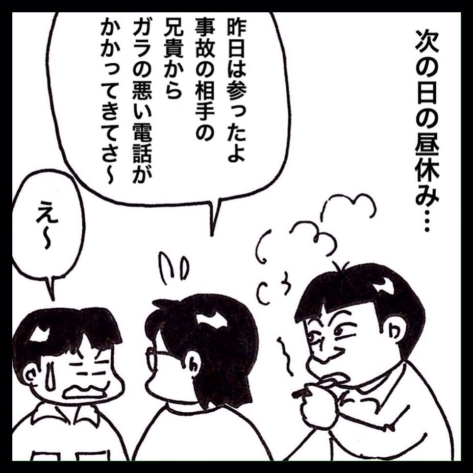 バイク事故の女性のお兄さんから脅迫まがいの電話がかかってきた事を、次の日に会社で愚痴りました。