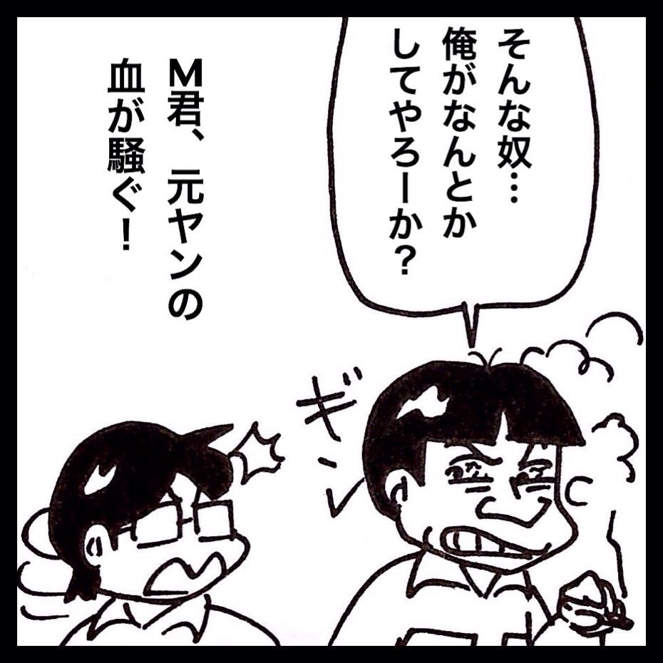 M君は学生時代、"ビーバップハイスクール"か"ろくでなしブルース"ばりのヤンキーだったそうで、その血が久々に騒いだそうです…