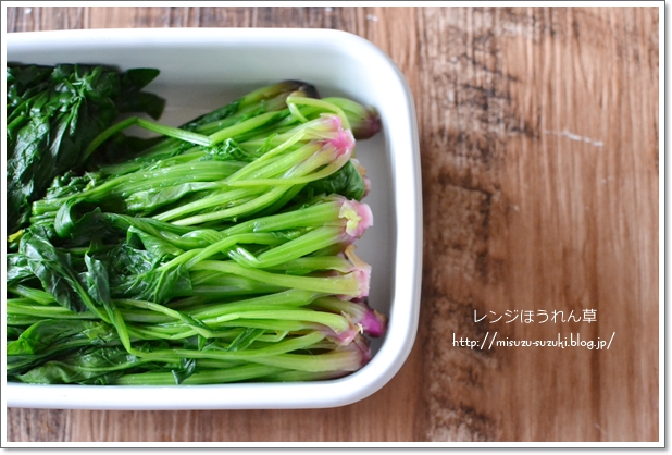 ★冷凍保存したものは、使う前日から冷蔵庫へ移し、自然解凍をしてレンジで温めます。レンジほうれん草
