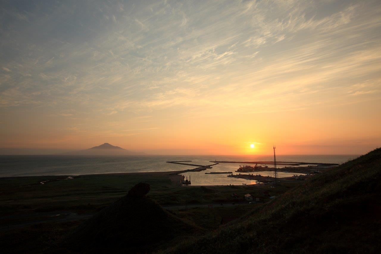 抜海港より夕日と利尻富士
