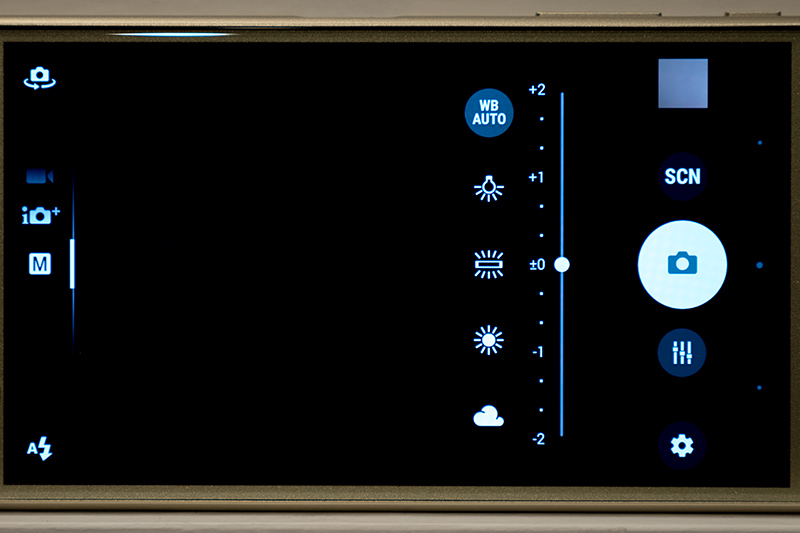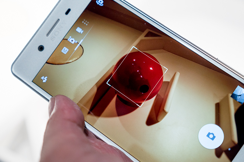 カメラアプリのUI(ユーザーインターフェイス)は、Xperia Z5のものを踏襲しつつ、新たに上から下へスワイプ操作することでフロントカメラとリアカメラの切り替えが行えるようになった。実際に操作してみるとこの操作は直感的で、画面の何処でも操作できるため簡単にカメラを切り替えることができる。これまで以上に使い勝手が向上している。