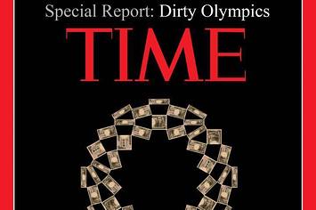 米ニュース週刊誌「TIME」の表紙のパロディ。「Dirty Olympics」(汚れたオリンピック)とのタイトルの下には、五輪のロゴマークが1万円札でかたどられている。