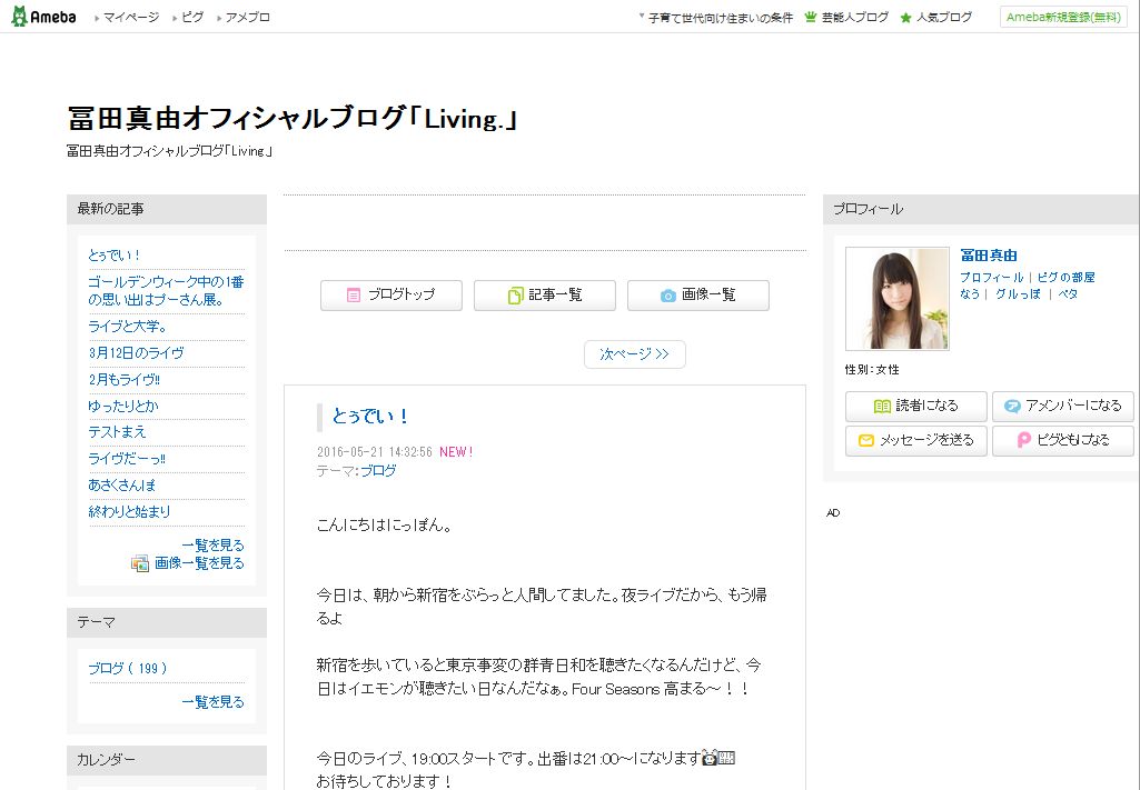 ブログ見ると、今日の朝までアップしてるんだね。なんでも無い日常の書き込みをした後に