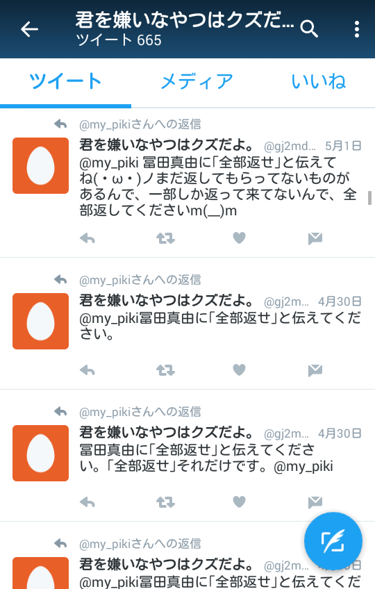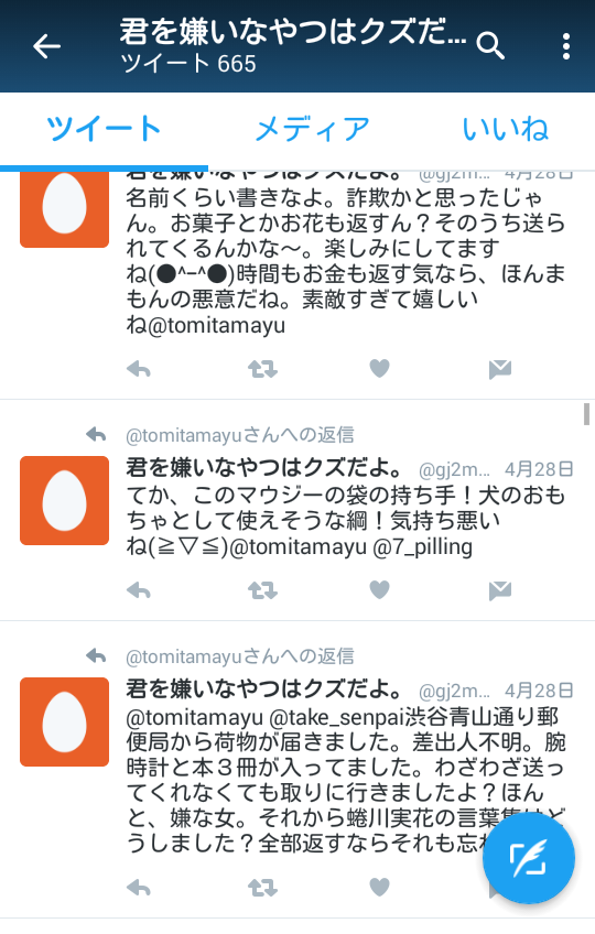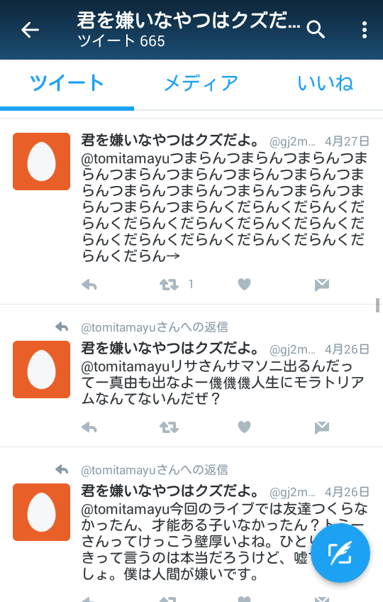 twitterで富田真由で検索したら4月末から粘着してるヤバそうな奴が出てくるぞ