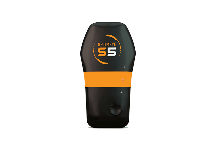 オプティムアイ S5。人間の身体の中で最も平らで、動作する際に邪魔にならない場所である背中にこれを取り付けるためにブラジャーを使う。位置情報をトラッキングするため、衣類の上から装着しても正確なデータが得られる。 catapult / Via catapultsports.com
