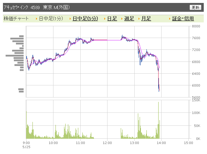 これで数日後に、アキュセラの大株主の保有減報告がきたらと思うと・・・株は怖いですねの展開だな。