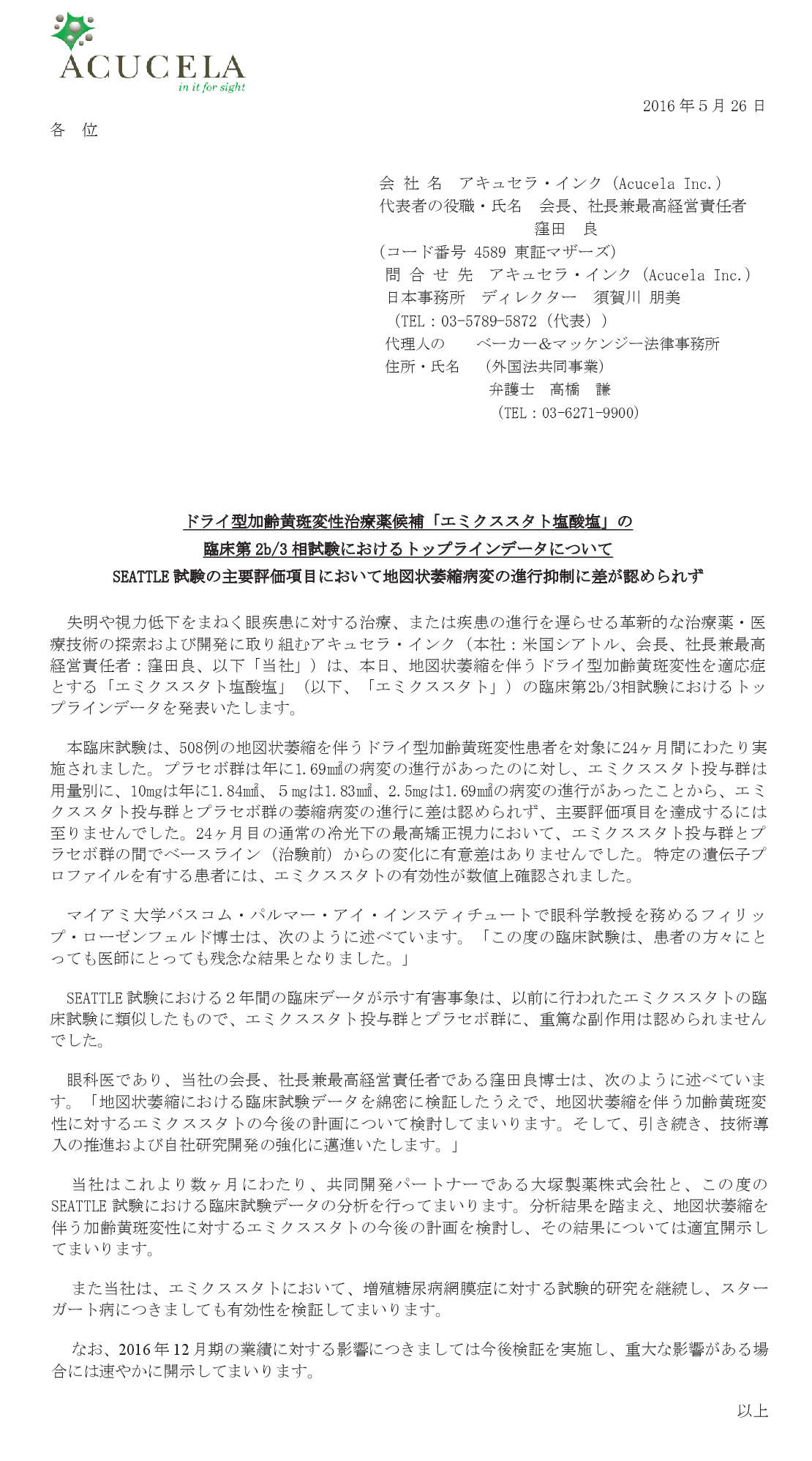 2016/05/26 07:30 アキュセラ・インク