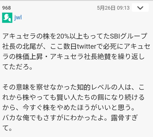 北尾さんを信じてアキュセラの7000円台に突撃した人の様子 pic.twitter.com/SHBoniaPvf