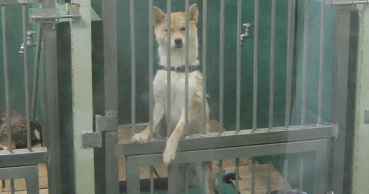 通常なら「収容から5日間経過しても飼い主が現れない動物は殺処分」すべきところ、実際は譲渡先を探しながら長期間飼育されていた。このため、建物内は所狭しとケージが置かれ、満員の状態。それでもケージ1つ1つに、収容されている犬猫の性格や当日の体調を記した手書きのメモが貼られ、職員は愛情込めて飼養しているようだった。新しい飼い主への譲渡を目指し、「しつけや散歩も行っている」と聞いた。