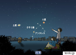 晴れる日には、是非、南東の空を見上げてみて下さい。土星やさそり座のアンタレスとともに、ひと際、輝く火星が見られます。