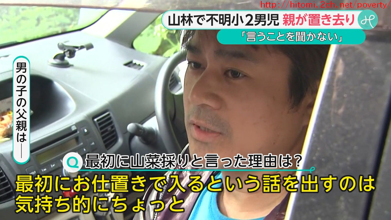 実際に子供がなにしたのか知らないけどこんなところに置き去りにして、さらに世間体考えて山菜取りなんて嘘つくような人間なんて人としても親としてもまともじゃないだろ