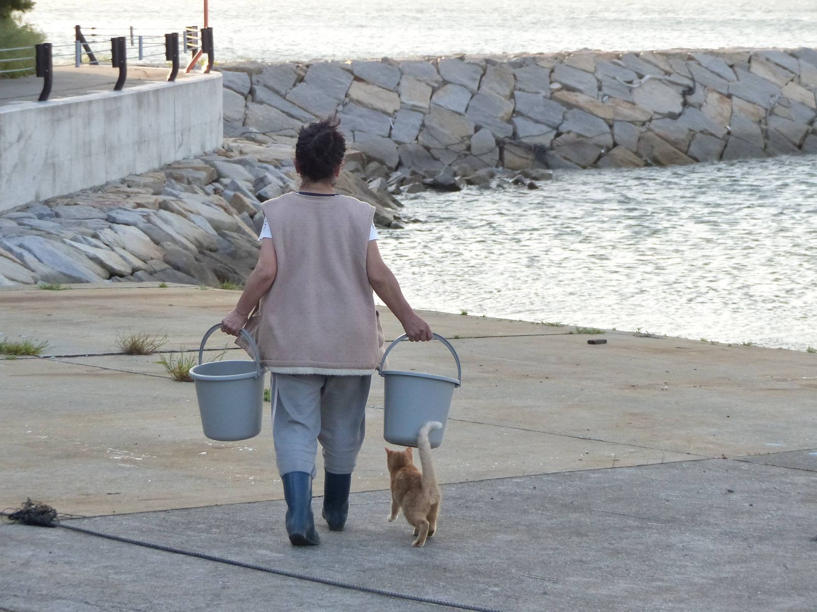 途中で触ろうが何しようが気にも留めず我が道を行く感じで港を歩き回ったり
