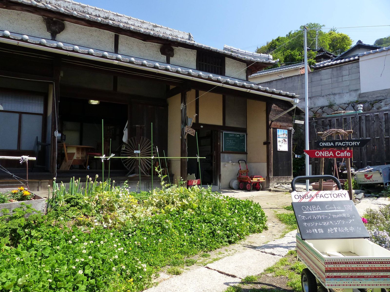おんばカフェっていうんやが「おんば」ってのはこの島で使われてる独特の手押し車のことなんや