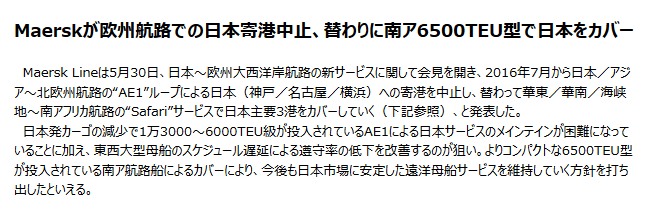 現在の新造コンテナ船による輸送供給能力に需要が追いついていない結果の日本航路撤退なので、まあ、大打撃なのかな?ってのある。いやだってマースクだいぶ打撃くらってなかった?