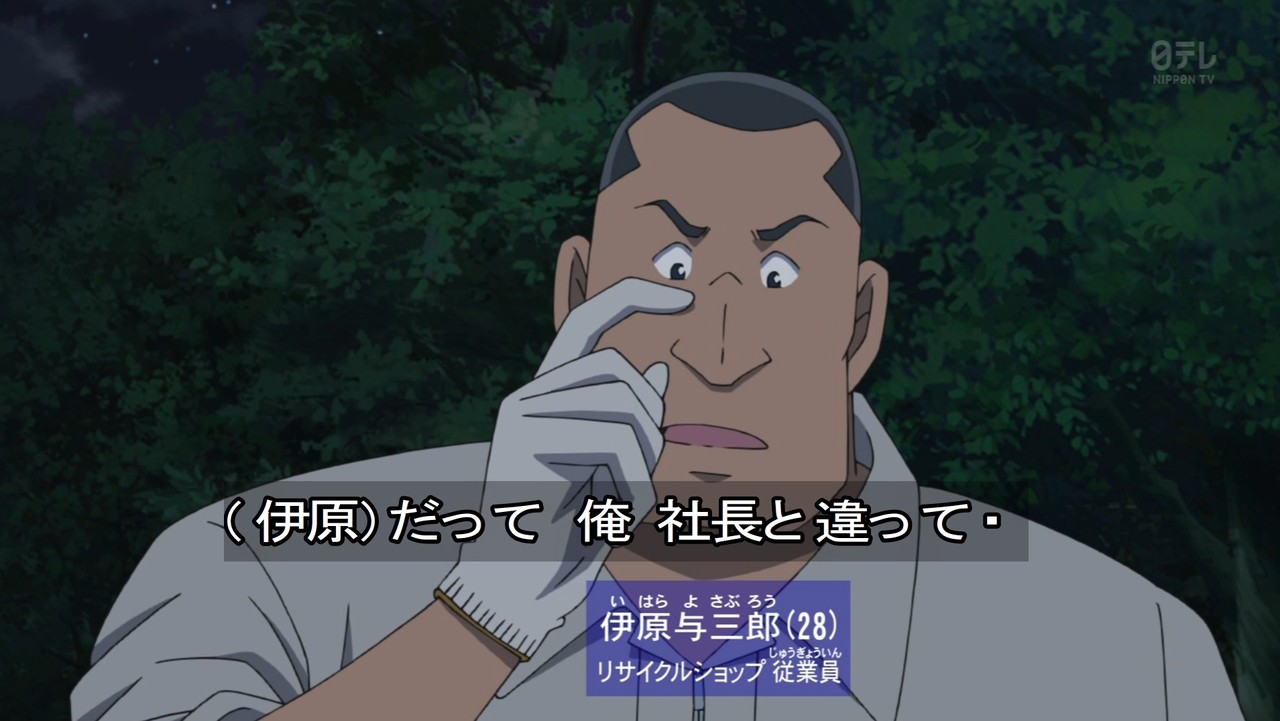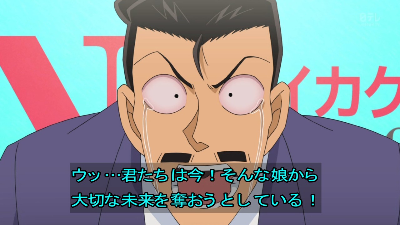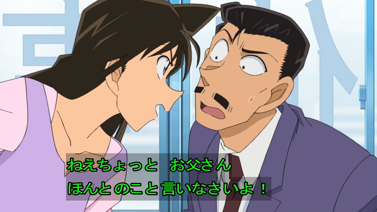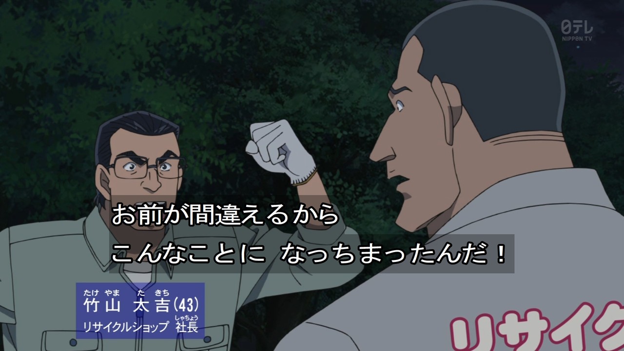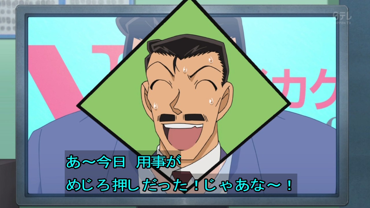 - 今回、明らかにコナンよりもおっちゃんが良かった回。おっちゃんは身内が絡むと推理力アップする。英理や園子はテレビ見てなかったのか。見てたらもっと大変な回になってた。あと犯人の動機がクズ。そんなんで人誘拐すんなよ。最近のコナンって犯人の動機がクズな奴多くないか?