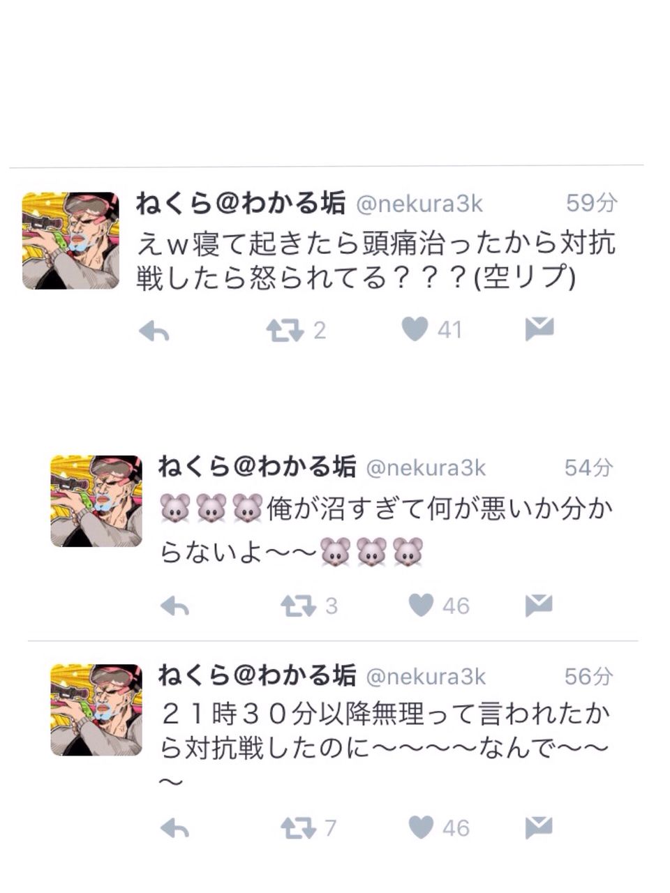 ねくらがはやめの対抗戦を「頭痛がするから」という理由で断る