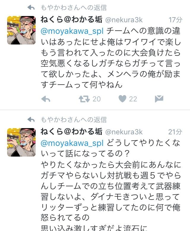 もやかわ、京大スプラサークルにリプで励まされる