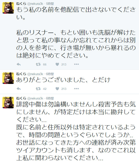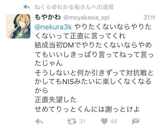 ねくら消えるのはいいとしてもやかわの誤解を完全に解いてから消えとけや