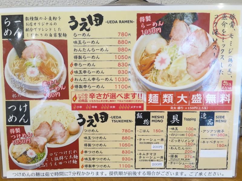 メニューは醤油、塩が650円、味噌750円スタートでサンマーメン、明太子めん。