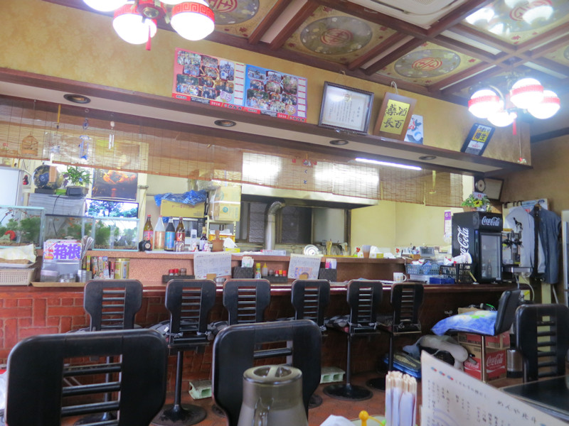 店先にメニューが貼り出されているので、十分吟味してから店内へ、土地柄テーブル主体の構成、半分以上埋まっていて、テーブル席は僅かに二つしか空いていません。