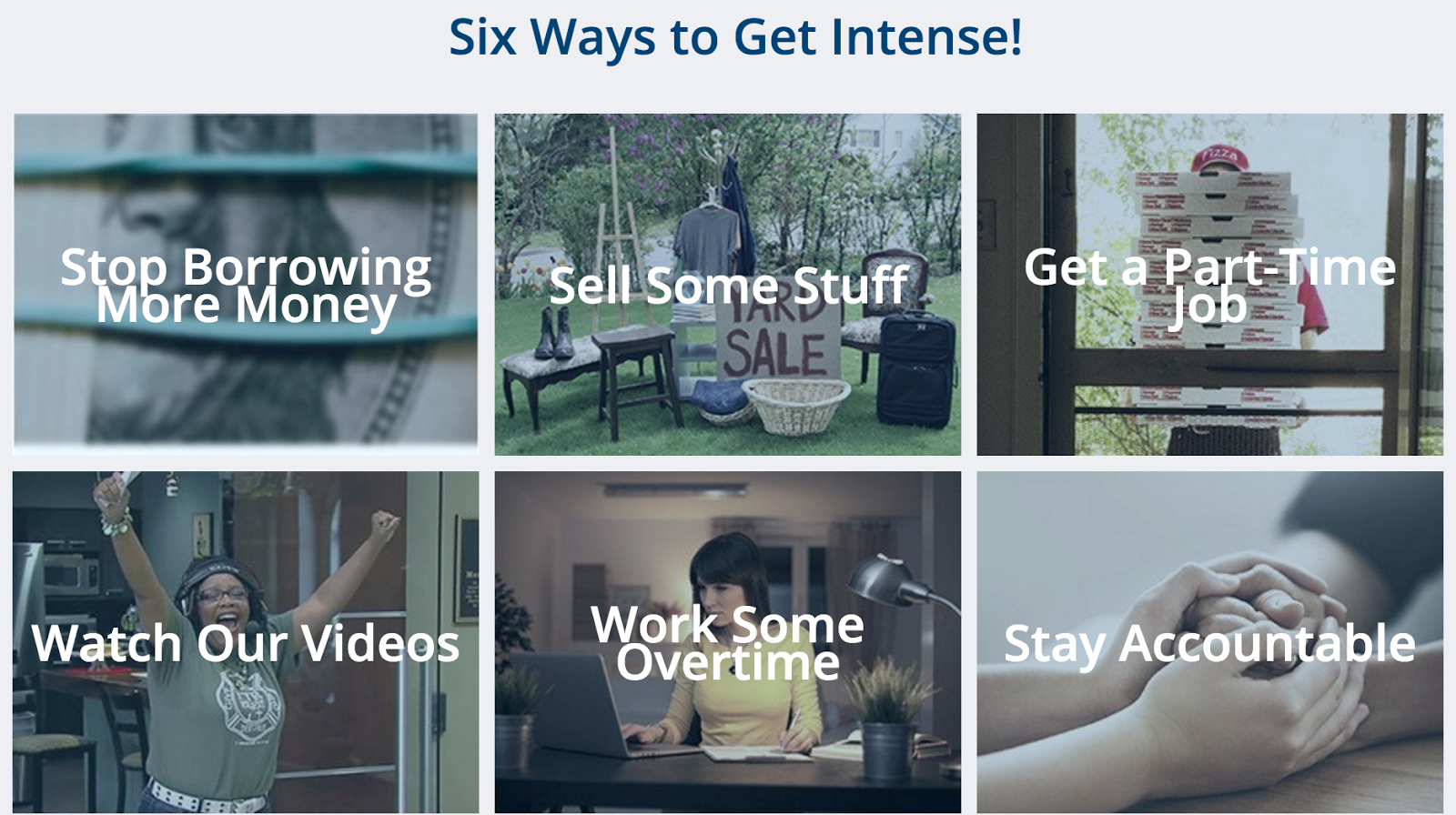 Attack debt by paying as much as you can on your smallest payoff balance. You need quick wins.