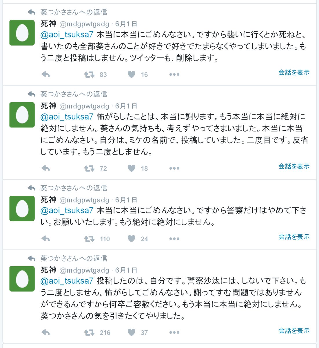 こんな事書いて警察沙汰にならないとでも思ったのかね?