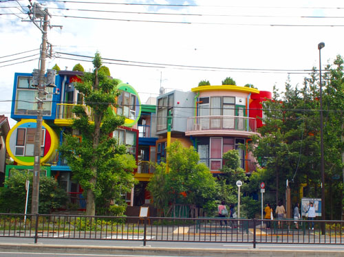 その荒川修作が手がけた建築と聞いて、どんな難しい哲学的なデザインかと思い木や、なんとわかりやすいマルチカラーの建築だった。荒川修作とマドリン・ギンズが手掛けた「三鷹天命反転住宅」だ。