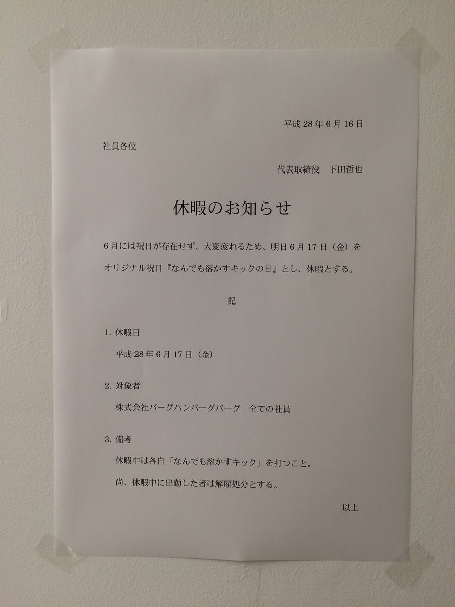【画像】 ムチャクチャな理由で明日会社が休みになりました