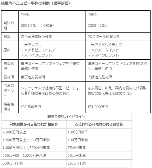 A社がBSA加盟企業3社の複数のソフトウェア「AutoCAD」、「AutoCAD LT」、「Microsoft Office」及び「Adobe Acrobat」を、権利者らに無断で複製し利用している、との情報を端緒にしたものでした。