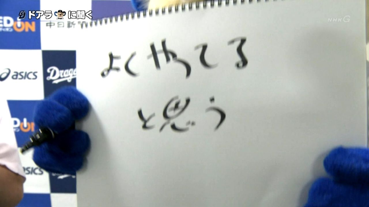 「そのよくやっているドラゴンズですが大谷投手から点を取らなくてはいけません。ドアラさん攻略法を書いて下さい」