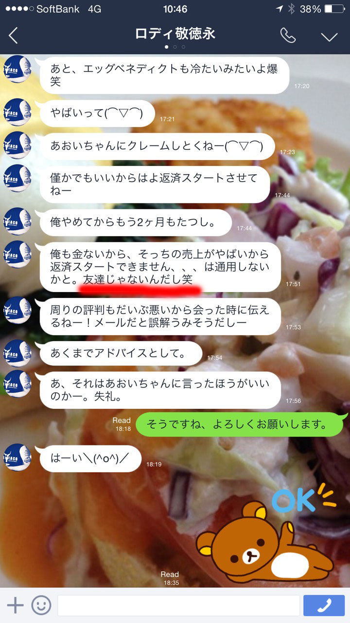 徳永が物件契約更新に対応せず、電話連絡しても反応無く、消費税増税分未払い、近所迷惑を起こすことに激怒。2016年1月12日から徳永に退去をするように交渉を始めた。徳永は安藤の電話に一切出なかったが、自分のFacebook上で「頭のおかしい物件オーナーが店を閉めて入れません」という発言を繰り返した。状況の是正のため曽根崎警察署に相談している。