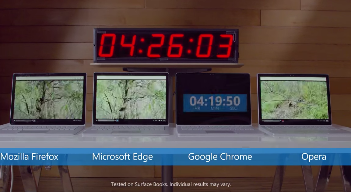 Microsoftは、Windows 10搭載のノートPCにおけるバッテリー消費影響を調査し、主要ブラウザの中でGoogle Chromeが最も「バッテリーを食う」ブラウザだったことが判明した。