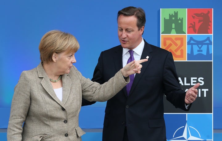 英のキャメロン首相(右)と、独のメルケル首相。EUでのイギリスのEU離脱についての話し合いは、イギリス抜きで行われる。 Peter Macdiarmid / Getty Images