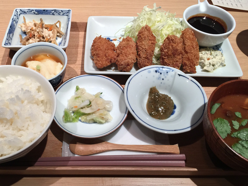 食べたのは広島産牡蠣フライの定食1200円、値段の以上にかなり美味しいカキフライ。