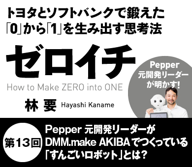 感情認識パーソナルロボット「Pepper」元開発リーダーであり、初の著書『ゼロイチ』を上梓した林要さんは、昨年ソフトバンクを退職し、ロボットベンチャー「GROOVE X」を立ち上げた。このGROOVE Xでは、一体何を開発しているのか?そして、林さんが考える日本がもう一度イノベーションのホットスポットになるための方法とは?(構成:崎谷実穂)