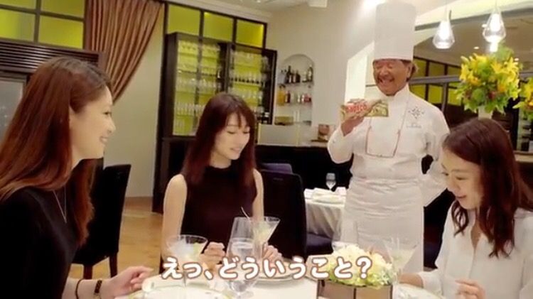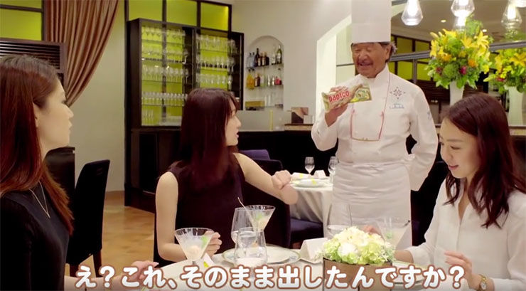 美人スイーツ女子を高級フレンチレストランに招待。市販アイスのパピコ(130円)の名を隠し、「チョココーヒーのなめらか仕立て」という名の高級スイーツとして食べさせたところ大絶賛。食後に「パピコです」と種明かしされ、女子が衝撃を受けるという動画が公開された。