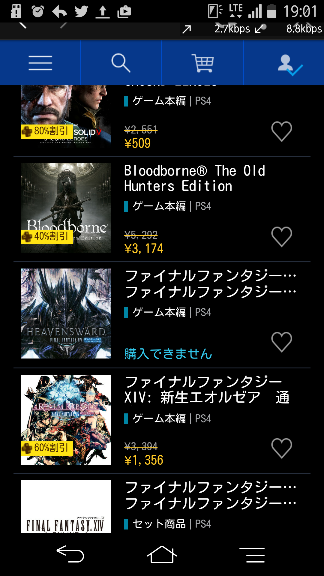ブラッドボーンが2116円、ファークライ4が1468円、ウィッチャー3が4782円