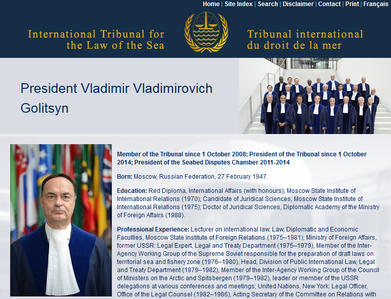裁判所長って柳井俊二じゃなくてVladimir Vladimirovich Golitsynじゃないの?