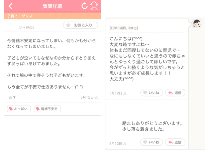 (ママリQ上で交わされる、ユーザー同士のコミュニケーション)