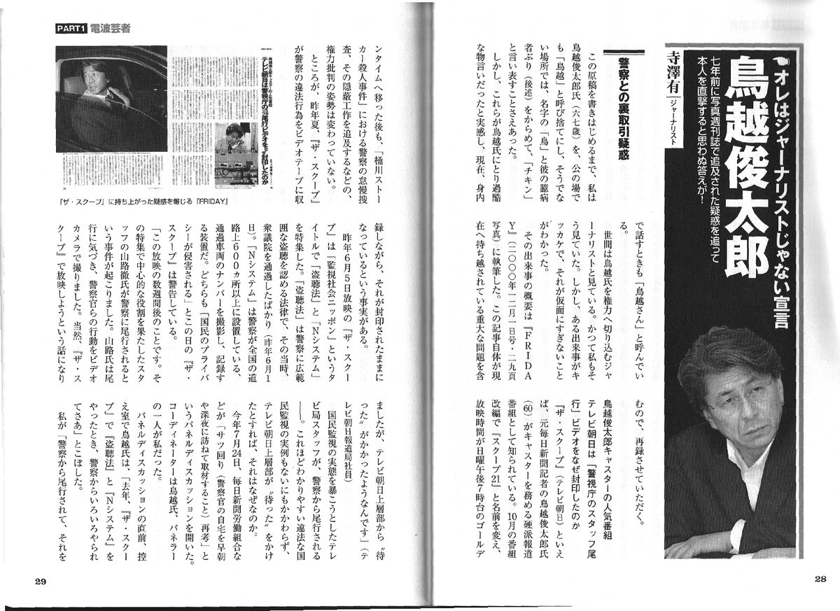 鳥越氏の正体は、私がかかわったいくつかの記事で明らかになっています。