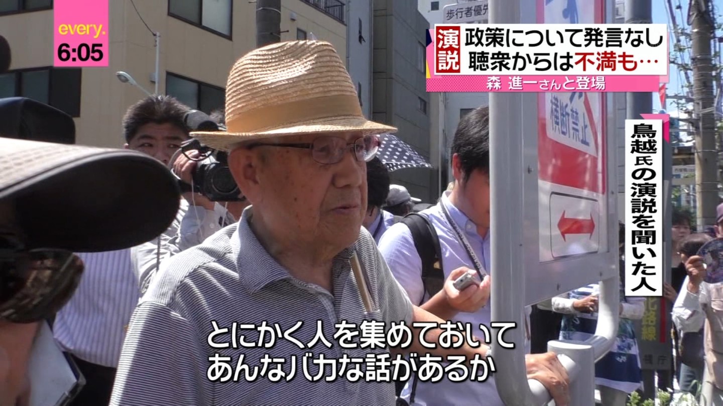 森進一歌っちゃダメじゃん、なに引き受けてんの、個人事務所だっけ? コンプライアンスどうなってんの。なんでも引き受けるほど困ってんの? 歌なら歌うけど応援演説はできないと直前で断ったとか?