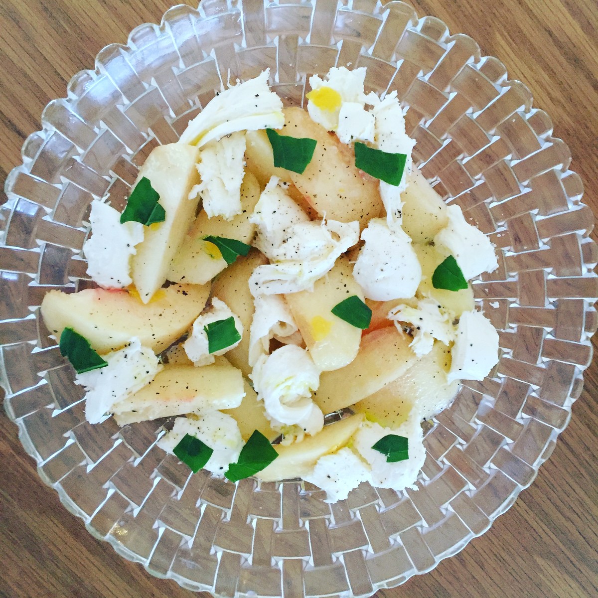 「今年も桃モッツァレラ始めました」の看板を出して。