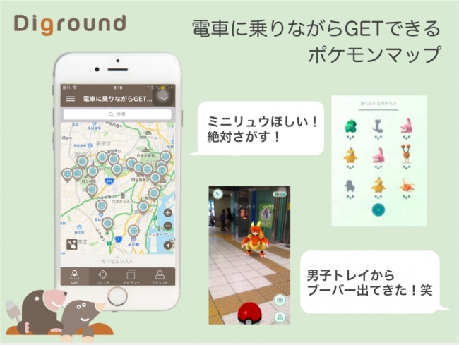 「Diground」は、首都圏200駅をカバーする「近くにいるポケモン」をまとめたMAPを公開したことを、お知らせします。
