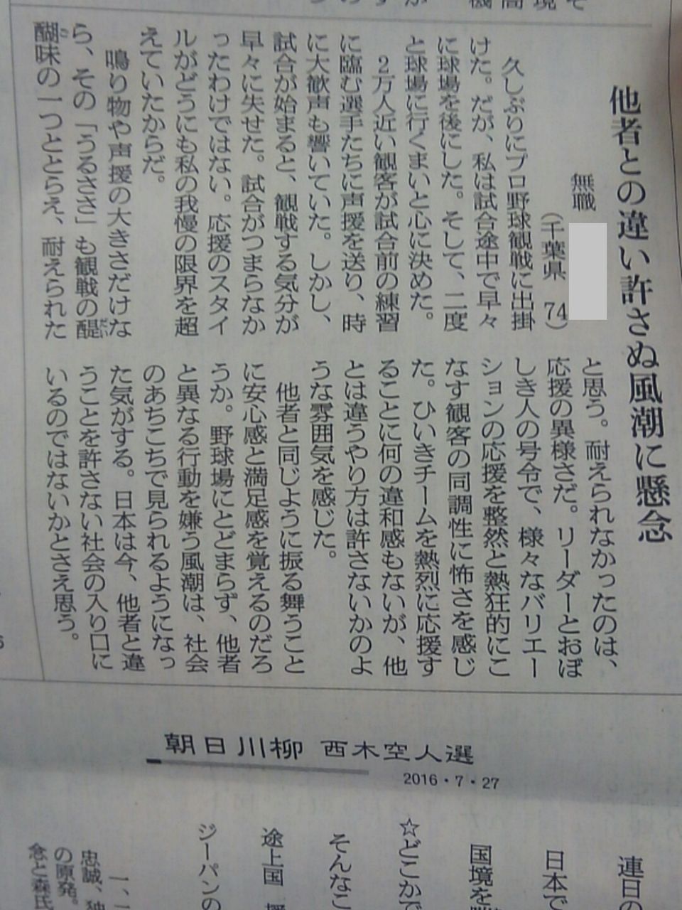 それ(応援)とこれ(他者を認めぬ風潮)とは別だろって思った