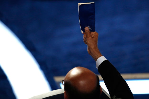 「国を愛するアメリカ人のイスラム教徒として、ここに立つことを誇りに思います」。夫キズルさんが切り出すと、会場は歓声でわき「USA」の連呼であふれた。ヒジャブをかぶった妻ガザラさんは一言も発せず、キズルさんをじっと見つめる。(演説の様子はこちら)